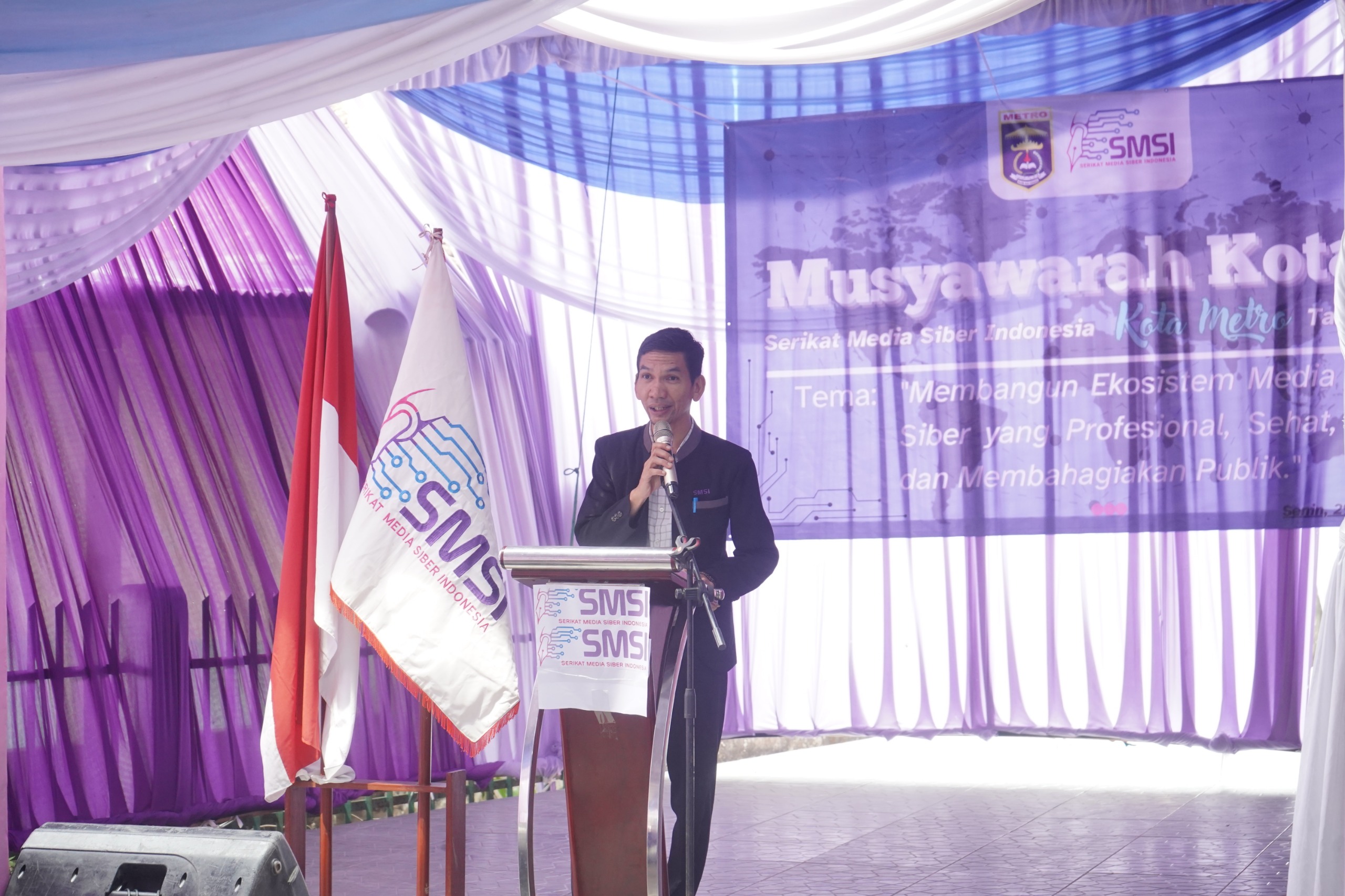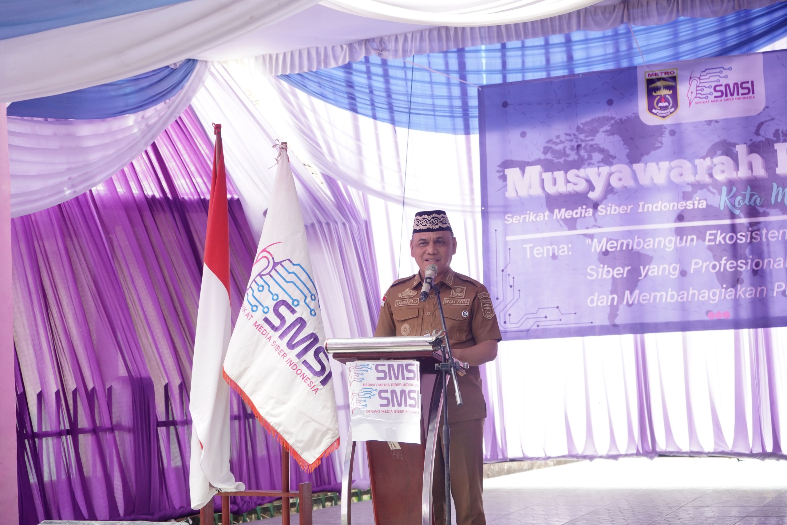 Kota Metro, A1BOS.COM - Walikota Metro, H. Bambang Iman Santoso membuka kegiatan Musyawarah Kota (Muskot) II Serikat Media Siber Indonesia (SMSI) Kota Metro. Muskot II SMSI Kota Metro ini merupakan forum tertinggi untuk menentukan formatur pimpinan SMSI Kota Metro periode selanjutnya, yang memimpin selama lima tahun kedepan.