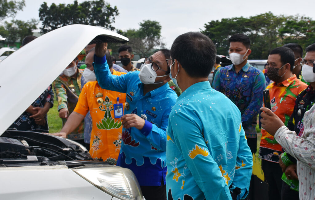 Walikota Metro Wahdi didampingi Wakil Walikota Metro Qomaru Zaman beserta jajaran melakukan pemeriksaan kendaraan dinas roda 4 (empat), meliputi pengecekan lampu kendaraan, mesin kendaran serta surat kelengkapan kendaraan.