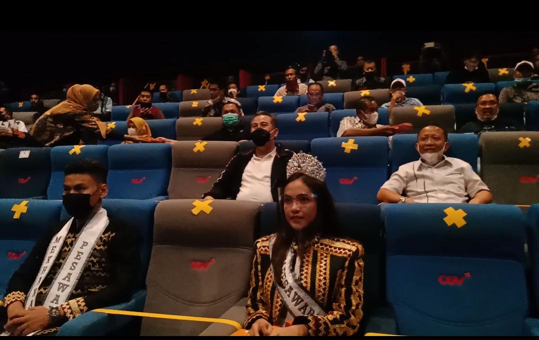 Bandar Lampung, A1BOS.COM - Antusias Bupati Pesawaran Dendi Ramadhona dan Wartawan se Kabupaten Pesawaran disaat nonton bareng film "Ayudia dan jalan Pulangnya", yang diputar di Bioskop CGV Transmart Bandar Lampung, Selasa (23/03/2021) membuktikan bahwa film tersebut pantas menjadi film andalan Kabupaten Pesawaran, dan sekarang tembus menjadi film Nasional.