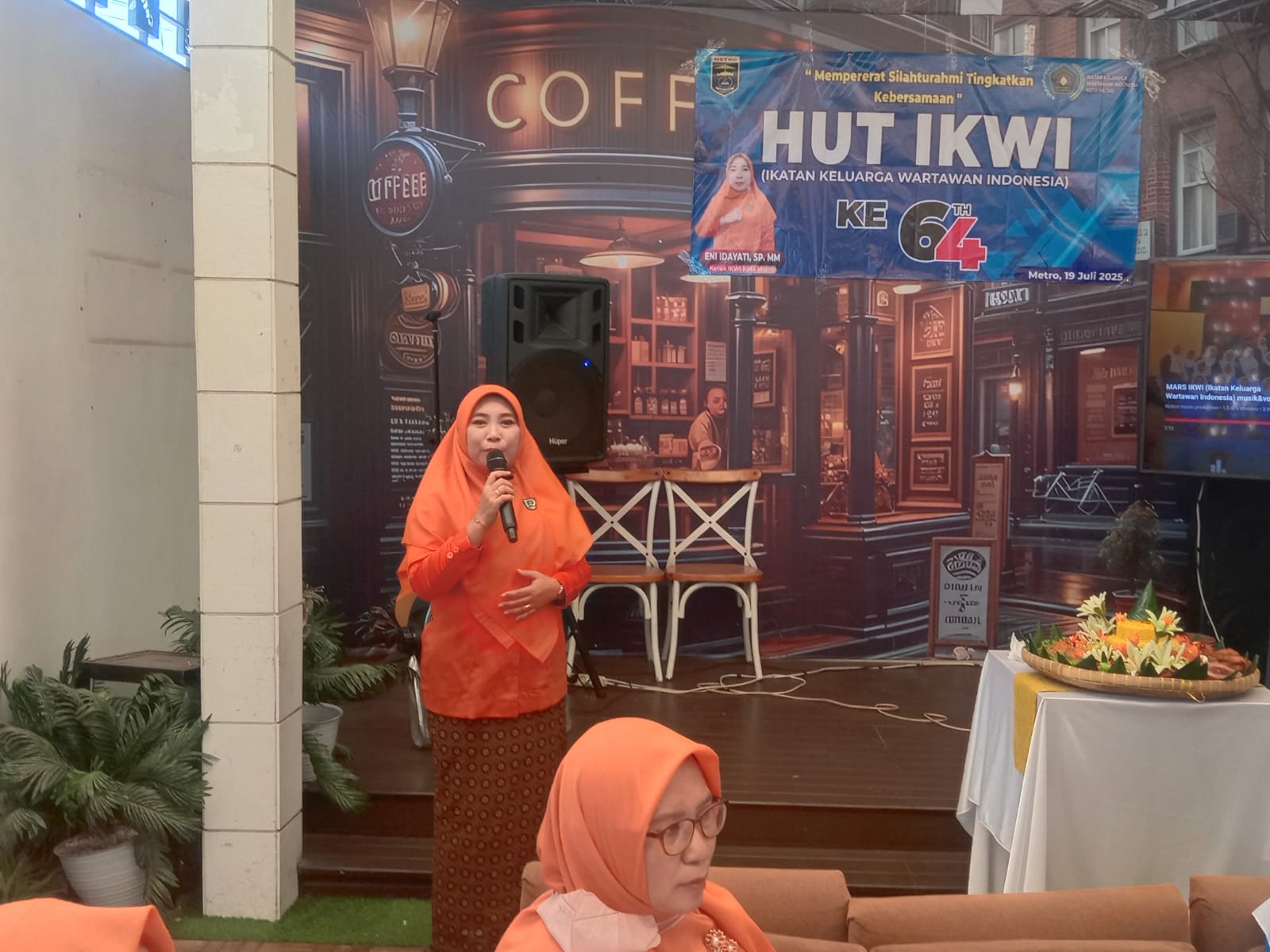 Ketua Ikatan keluarga Wartawan Indonesia (IKWI) Kota Metro, Eni Idayati, S.P., M.M. dalam sambutannya menyampaikan rasa syukur dan bangga atas perayaan HUT IKWI yang telah mencapai usia ke-64 tahun tersebut.
