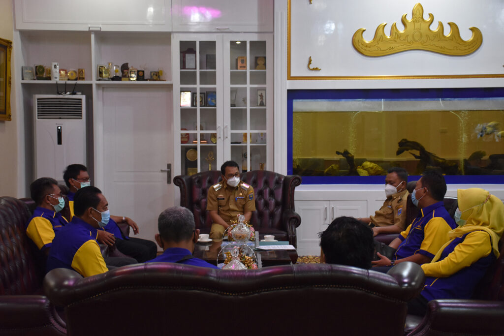 Kota Metro, A1BOS.COM - Walikota Metro Wahdi menerima kunjungan pengurus Komite Olahraga Nasional Indonesia (KONI) Kota Metro di Kantor Dinas Walikota, Senin (15/03/2021).