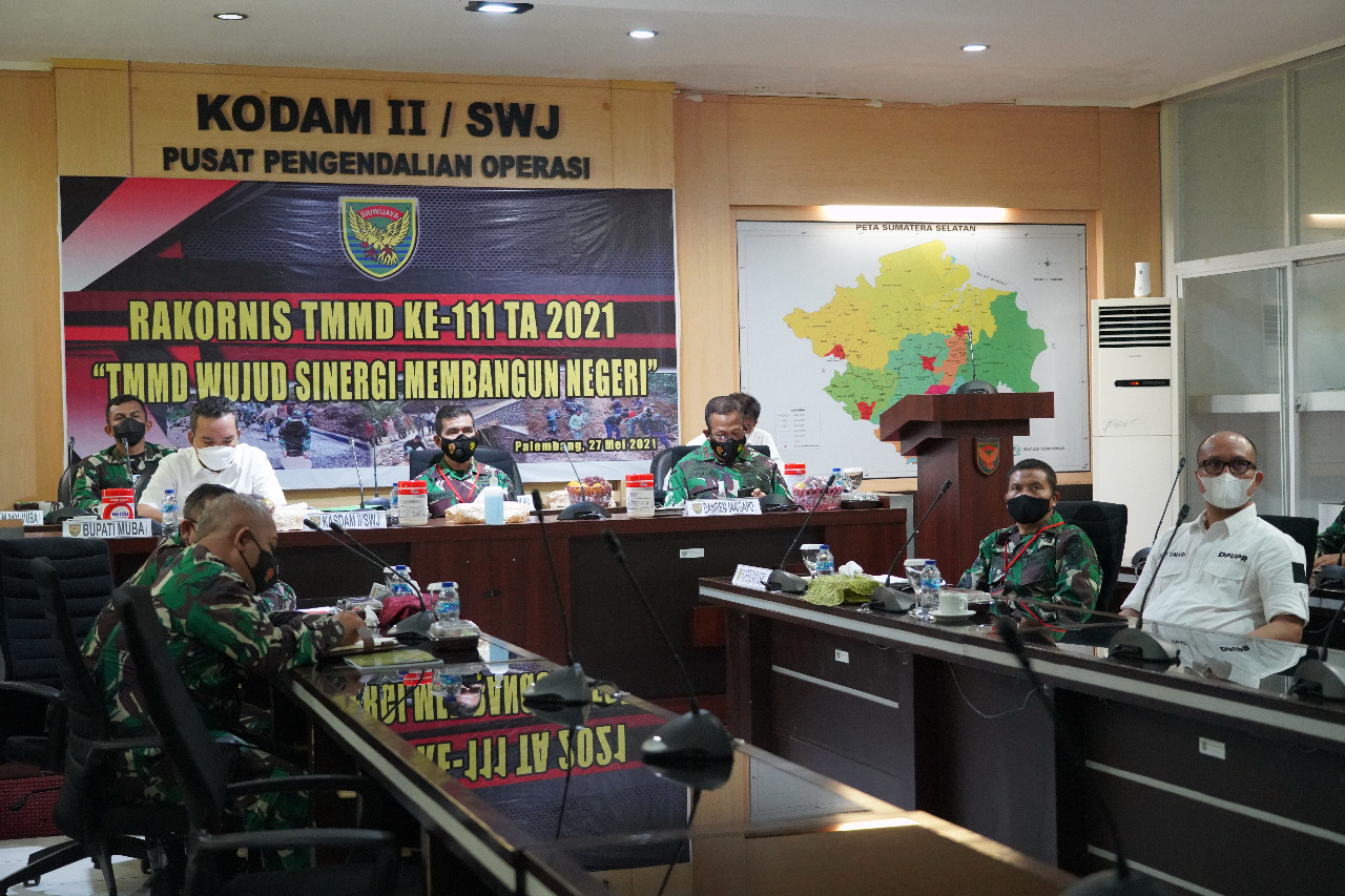 Turut hadir mendampingi Kasdam II/Swj dalam kegiatan Rakornis TMMD Ke-111 TA 2021 kali ini, antara lain Danrem 044/Gapo, Kapendam II/Swj, Waaster Kasdam II/Swj, Dandim Muba dan Dandim Lampung Timur selaku Dansatgas TMMD Ke-111 TA 2021 serta Wakil Bupati Muba dan Kepala Bappeda Kab. Muba.