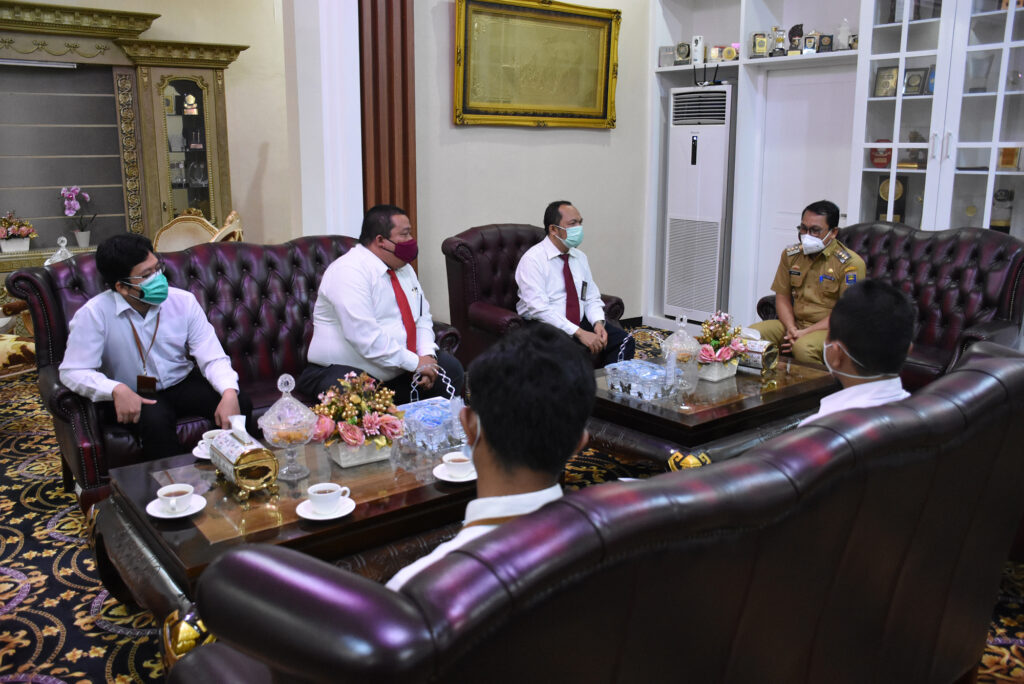 Kota Metro, A1BOS.COM - Walikota Metro Wahdi menerima kunjungan rombongan Dirjen Pajak Kementerian Keuangan RI di ruang kerja Walikota Metro didampingi Wakil Walikota Metro Qomaru, Senin (15/03/2021).