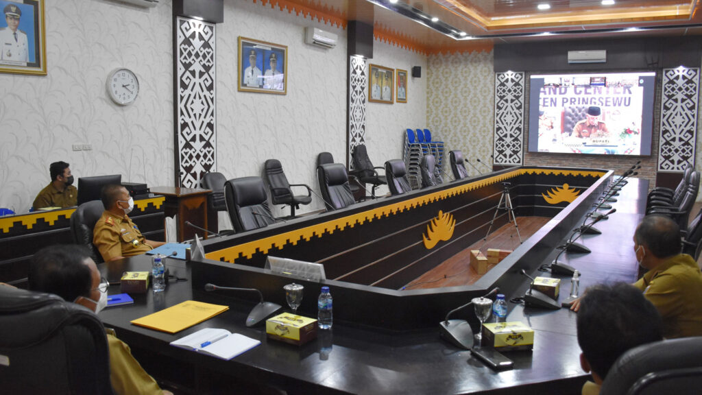 Kota Metro, A1BOS.COM - Walikota Metro Wahdi Siradjuddin beserta Wakil Walikota Metro Qomaru Zaman menghadiri Acara Penyerahan LHP Unaudited BPK-RI terhadap Pemerintah Provinsi Lampung secara Virtual,di ruang OR Setda Kota Metro, Senin (15/03/2021)