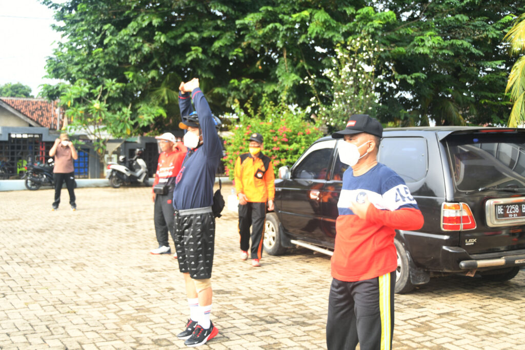 Di akhir kunjungannya Wahdi beserta para rombongan ikut senam bersama anggota PWRI. (Rilis info.metrokota.go.id)
