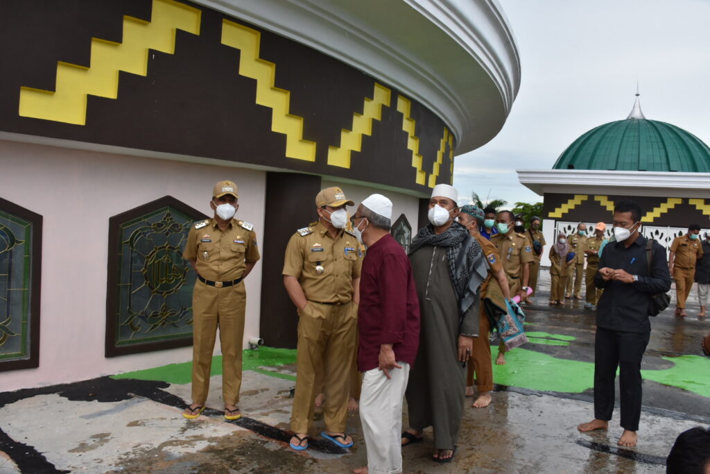 Kota Metro, A1BOS.COM - Walikota Metro Wahdi Siradjuddin beserta Wakil Walikota Metro Qomaru Zaman meninjau langsung tempat ibadah yang juga menjadi ikon Kota Metro yakni Masjid Taqwa, Senin (08/03/2021).