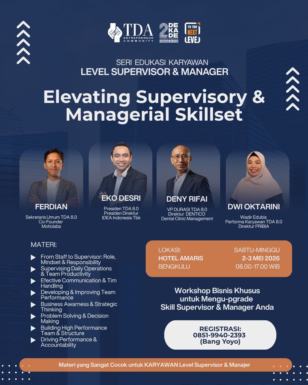 Upgrade Skill Manajer dan Supervisor, TDA Gelar Workshop Elevating Supervisory & Managerial Skillset
