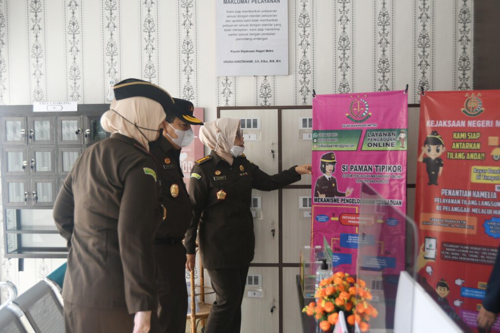 Kota Metro, A1BOS.COM - Kejaksaan Negeri Metro mendapat kunjungan dari Wakil Kepala Kejaksaan Tinggi Lampung Edyward Kaban beserta tim, dalam hal ini tim rombongan disambut baik oleh Kepala Kejaksaan Negeri Metro Virginia Hariztavianne beserta jajaran, tidak hanya itu tim juga langsung melakukan peninjauan di seluruh ruangan Kejaksaan Negeri Metro, Selasa (25/05/2021).