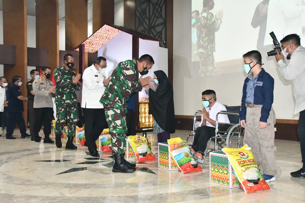 Dalam acara tersebut juga dilaksanakan kegiatan Bakti Sosial (Baksos) berupa penyerahan 100 paket Sembako secara simbolis kepada Warakawuri, Veteran dan masyarakat tidak mampu serta dilanjutkan dengan penyerahan senjata dari masyarakat Kabupaten Musi Banyuasin kepada Pangdam II/Swj.