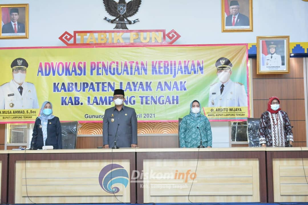 Kepala PP & PA Meri Destian dalam laporannya menyampaikan merujuk dalam target Provinsi Lampung sebagai Provinsi Layak Anak, Provinsi mendorong Kabupaten Kota se-Provinsi Lampung untuk dapat mewujudkan Kabupatennya sebagai Kabupaten Layak Anak, dan saat ini juga Kabupaten Kota se-Provinsi Lampung sedang menjalani proses evaluasi Kabupaten Layak Anak dan sudah selesai sampai tahap penginputan data berbasis website yang berlangsung dari tanggal 15 Maret 2021 s/d 02 April 2021 di mana Lampung Tengah capaian nilai 985,50 data total nilai 1000.
